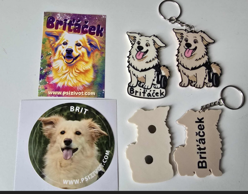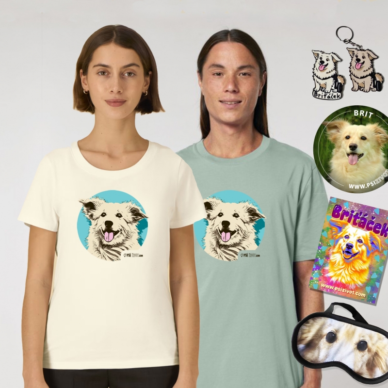 Set je prodejný pouze jako celek - jedno triko, maska na spaní, klíčenka, magnetka, samolepky. Vše s motivem našeho "maskota" vozíčkáře Briťáčka, kerého máme v trvalé péči. Výtěžek jde přímo na pomoc jemu.